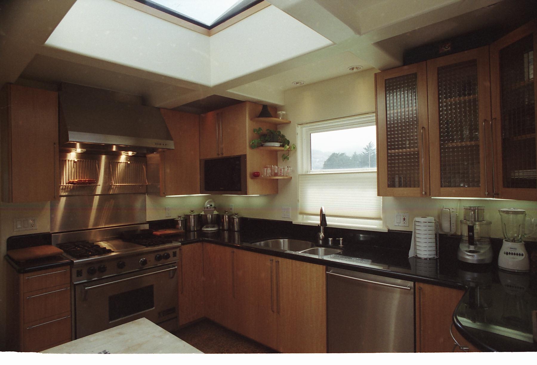 - Farver Kitchen, with galaxy granite and anigre cabinets — overlooking the Castro Theater marquee, San Francisco, CA, 1990s